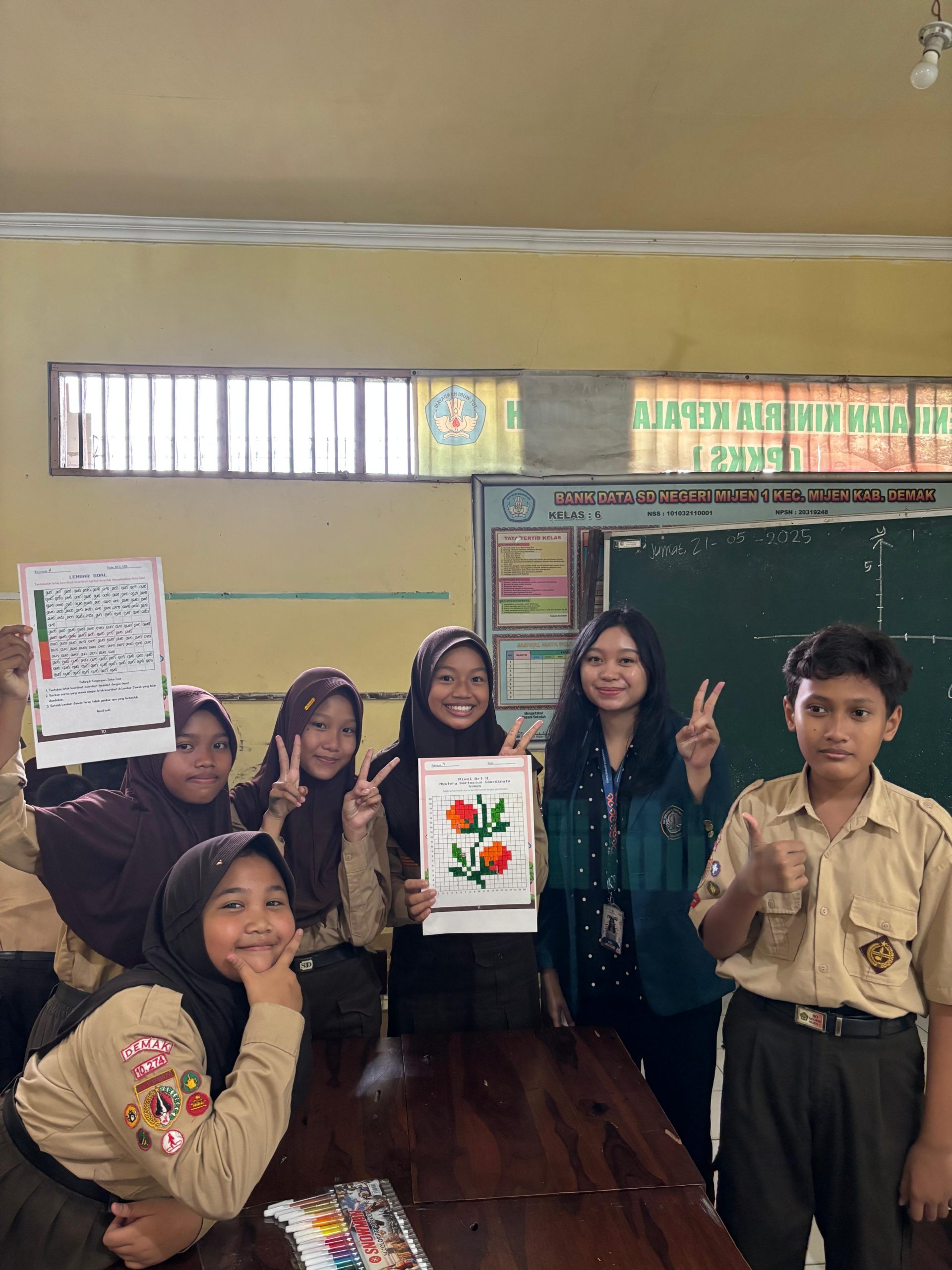 Mahasiswa KKN-Tematik Undip Tim 152 menemukan solusi untuk mengatasi masalah tersebut. Metode pembelajaran yang menyenangkan dikenalkan dengan bermain selagi menerapkan ilmu matematika. Materi yang diajarkan adalah salah satu topik dasar dalam ilmu matematika, yaitu sistem koordinat kartesius. Para siswa yang terlibat di kegiatan ini, yaitu siswa kelas VI SD Negeri 1 Mijen, Kabupaten Demak pada bulan Mei 2025.