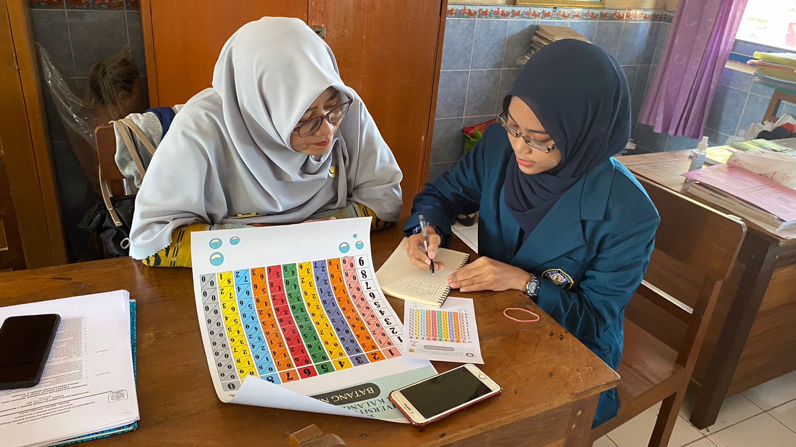 Para siswa sangat antusias dalam mempelajari operasi perkalian menggunakan batang napier tersebut.